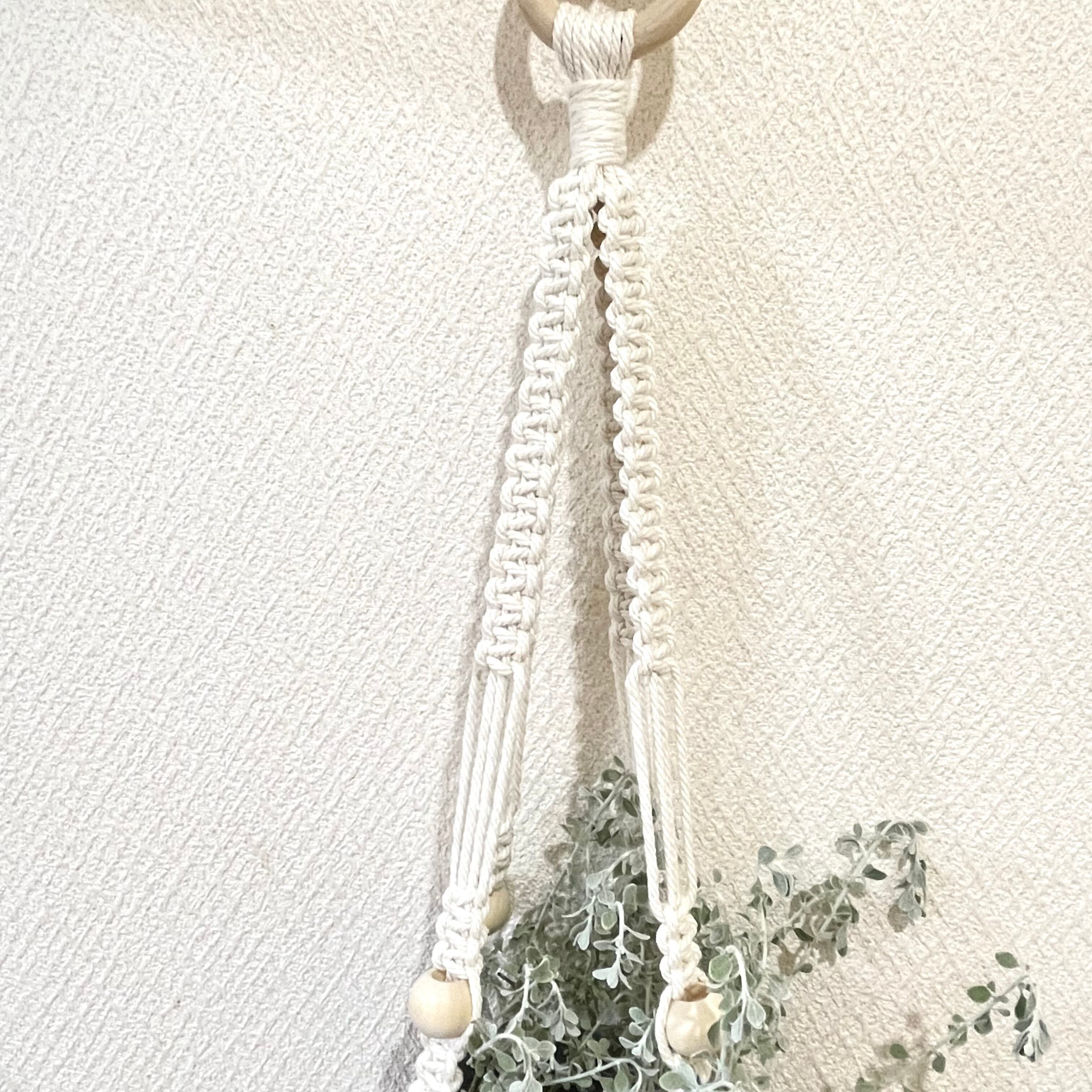 ツルなど観葉植物を吊るすプラントハンガーを作りました。ウッドビーズがアクセントになって可愛いです。